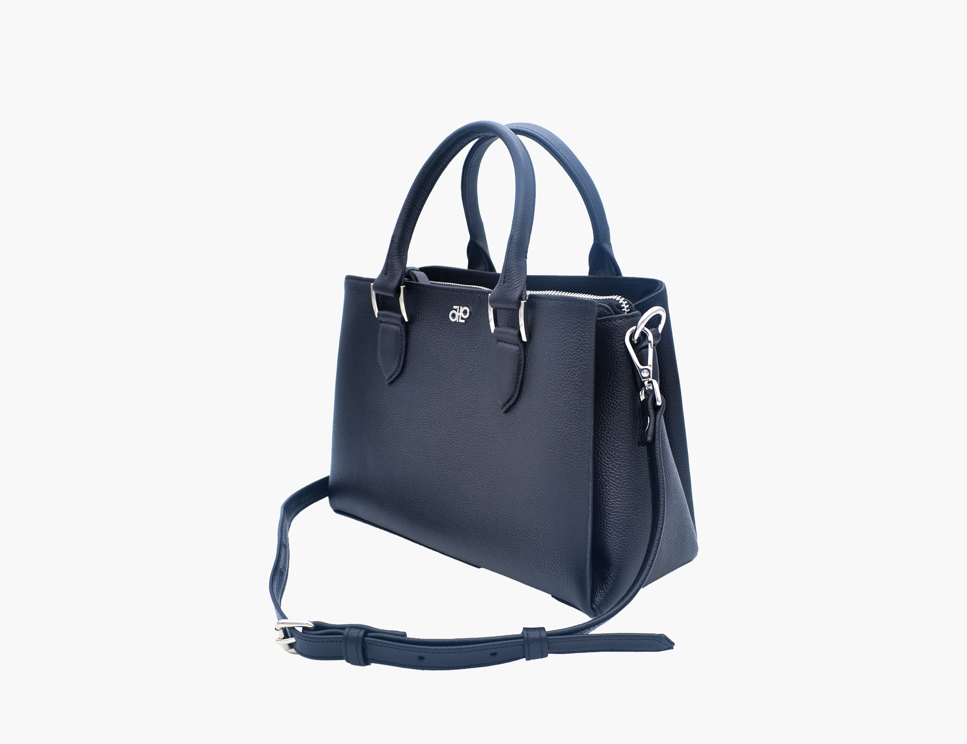 Structured top handles and a detachable shoulder strap offer versatile carry, while the zipped compartments and a slip pocket provide thoughtful organization. Fully lined in soft cotton fabric, the interior reflects quiet luxury through detail and feel. No base studs — just clean, uninterrupted lines that preserve the bag’s refined simplicity.