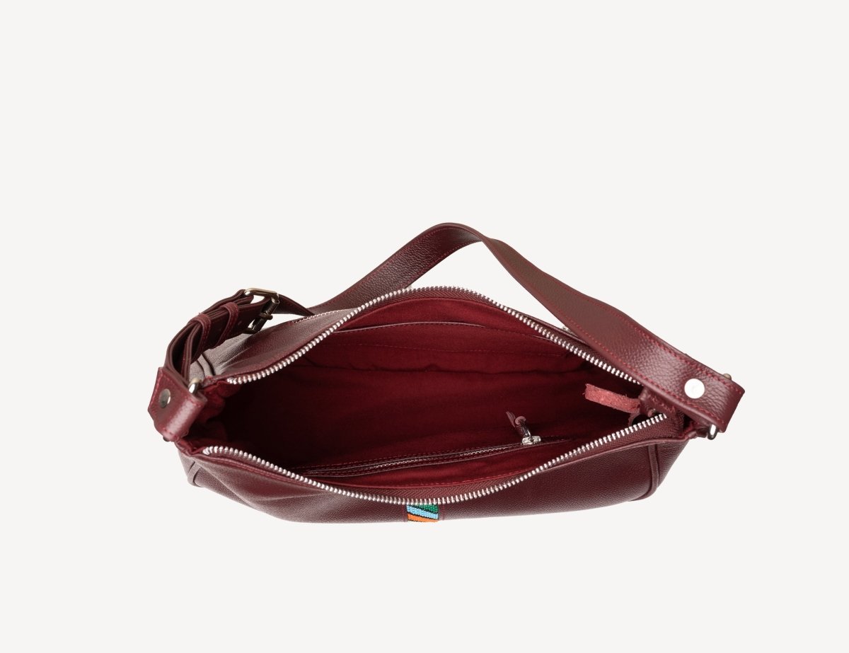 Refined and effortlessly wearable, the Adelphi Shoulder Bag II is crafted from full-grain pebbled leather with a relaxed silhouette that sits comfortably under the arm. A hand-applied Maasai-inspired bead strip adds a distinctive artisanal accent, while polished silver hardware and a cotton-lined interior bring everyday practicality. Designed to move seamlessly from day to evening, it balances cultural detail with modern ease.